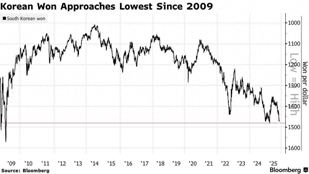 数据显示,全球基金已抛售约46亿美元韩国股票。随着股市资金外流和居民海外投资增加,本季度韩元暴跌近4%,成为仅次于日元的亚洲表现最差货币,这使韩国政府干预压力持续加剧。财政部周五的声明推动韩元走高,使其成为当日亚洲涨幅最大的货币。此外,韩国基准股指周五开盘下跌2.8%,在财政部发表声明后收复部分失地。